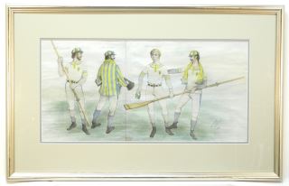 LOT 100 Drawing with Watercolour, 12 1/8" x 24 3/4", "Untitled Rowing Team". Estimate: $100 - $200 Sold For: $50 Auction Date: Tuesday, April 09 2024 at 4:00 PM