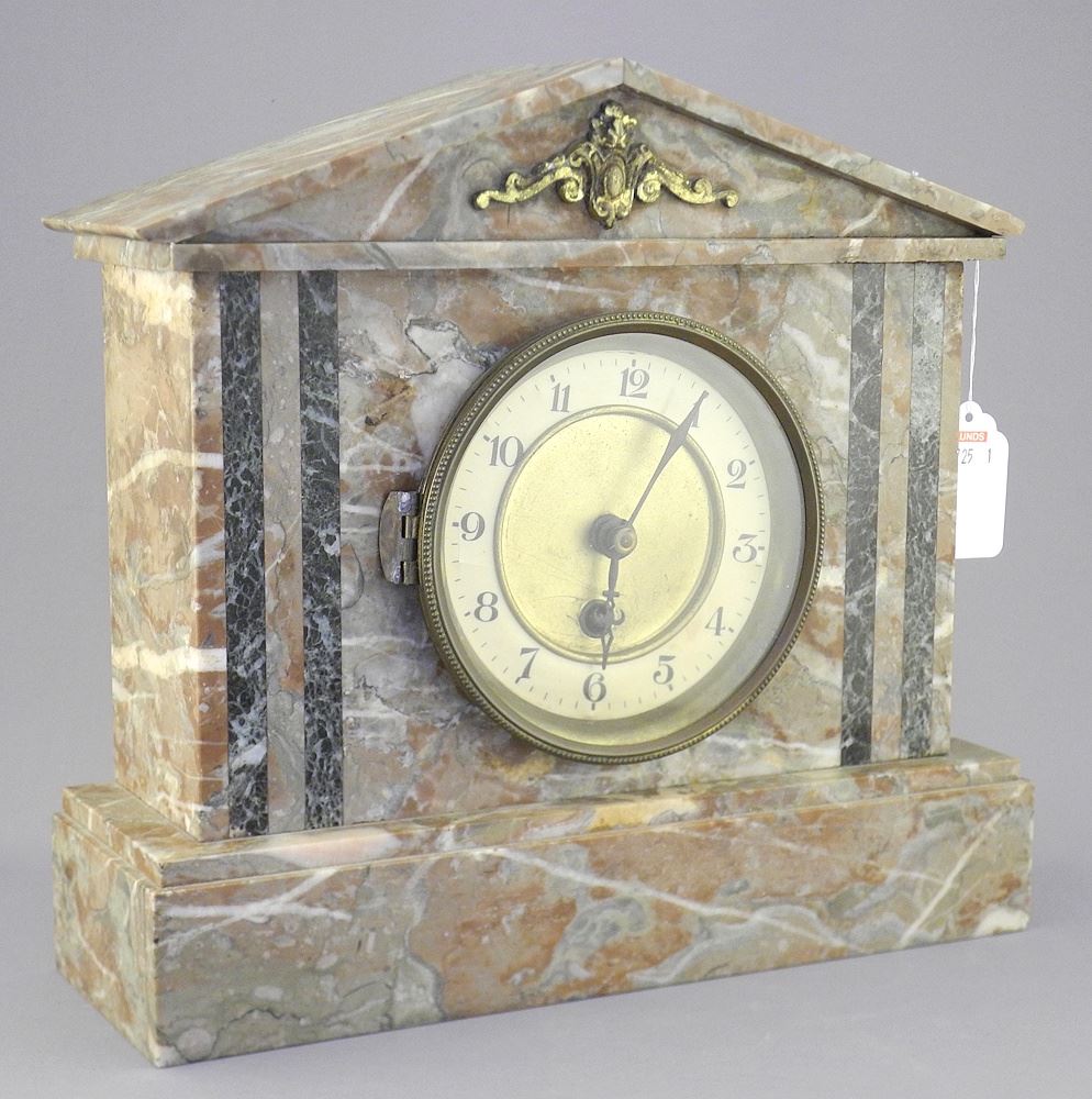 LOT 356 Late 19th C. Marble Clock, 10"h (chips noted). Estimate: $100 - $200 Sold For: $100 Auction Date: Tuesday, February 10 2026 at 4:00 PM