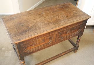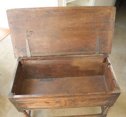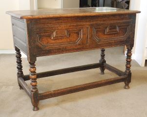 LOT 104 18th C. Oak Dough Bin with Paneled Front, 41 1/2 x 19 3/4 x 29"h. Estimate: $300 - $500 Sold For: $325 Auction Date: Tuesday, February 10 2026 at 4:00 PM
