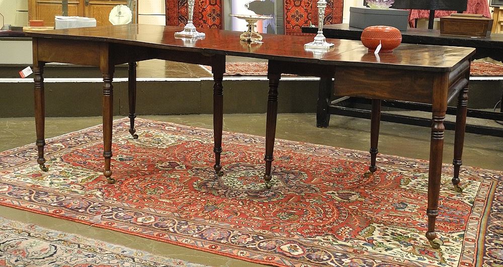 Pair of American Mahogany D-End Tables, Each 30 1/4 x 40 x 21 3/4".