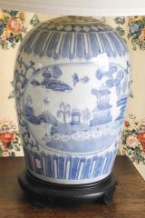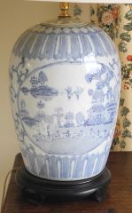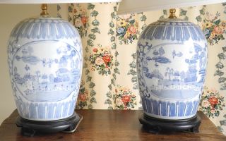 Pair of Blue & White Chinese Styled Table Lamps, 28"h.
