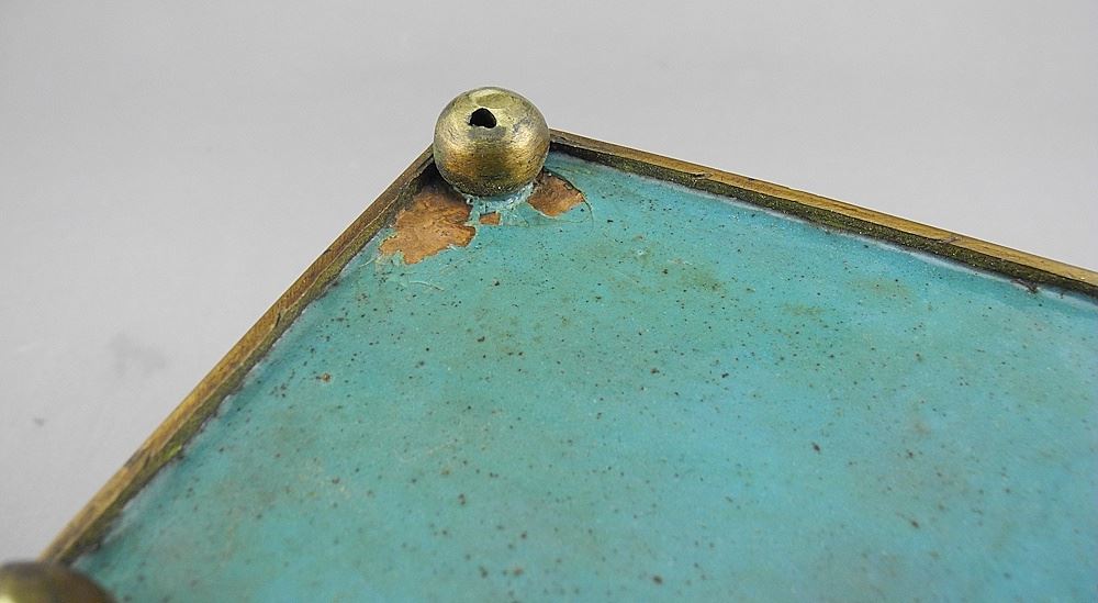 Chinese Cloisonne Smoking Set, Box 3 x 4 5/8 x 3 3/8" (1 foot nibbled).