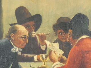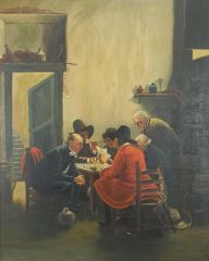 LOT 261 Oil on Board signed D. Kernow After Claus Meyer, 37 x 29 1/2", " with Men Playing Dice". Estimate: $100 - $200 Auction Date: Tuesday, February 10 2026 at 4:00 PM
