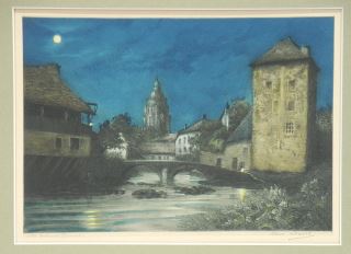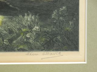 Etching with Aquatint signed Leon David, 7 x 9 3/4", "Old Anbois (France)".