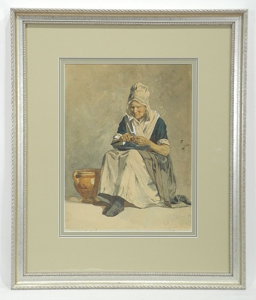 LOT 286 Watercolour signed E.S. Witkamp 18 June'78, 13 3/4 x 10 1/4", "Woman Preparing Food". Estimate: $100 - $200 Auction Date: Tuesday, February 10 2026 at 4:00 PM