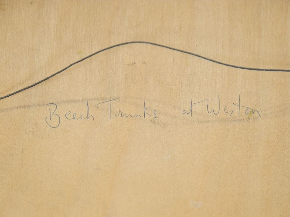 Oil on Board signed FH, 8 x 10 5/8", "Beech Trunks at Weston".