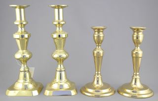 LOT 354 Two Pairs of 19th C. Brass Candlesticks, 10 1/4 & 8". Estimate: $80 - $120 Sold For: $80 Auction Date: Tuesday, February 10 2026 at 4:00 PM