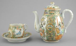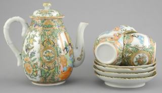 LOT 314 Chinese Rose Mandarin Porcelain Tea Pot (5 1/2"h) with Three Cups & Four Saucers. Estimate: $60 - $100 Auction Date: Tuesday, February 10 2026 at 4:00 PM