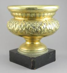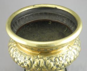 LOT 61 19th C. Embossed Brass Bowl on Ebonized Wood Stand, 9 7/8"h. Estimate: $50 - $100 Sold For: $70 Auction Date: Tuesday, February 10 2026 at 4:00 PM