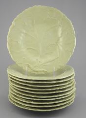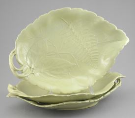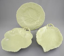LOT 337 Collection of Cabbage Leaf & Fern Pattern Earthenware Dishes, 9 1/4 - 11 1/4" (nibbled). Estimate: $100 - $200 Sold For: $90 Auction Date: Tuesday, February 10 2026 at 4:00 PM