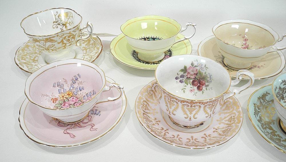Nine Paragon & Hammersley Bone China Teacups & Saucers.