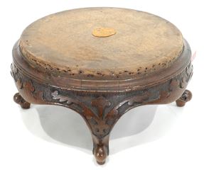 Antique Victorian Mahogany Round Footstool (needs upholstery).
