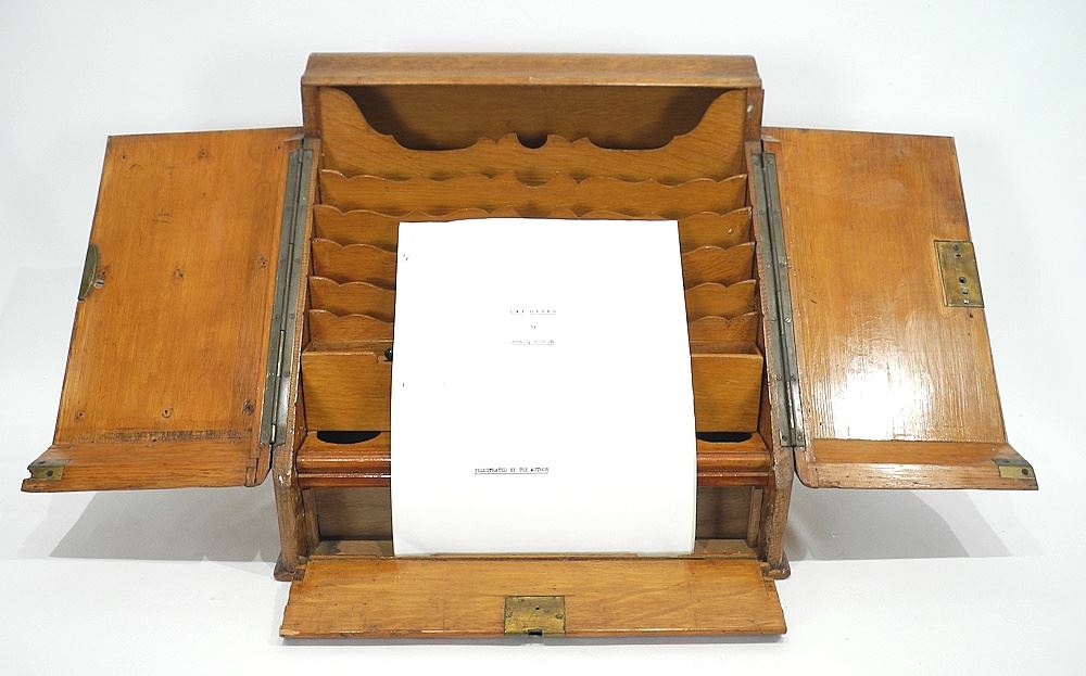 19th C. Oak Sloped Stationary Desk, 13 5/8 x 15 3/8 x 10 7/8".