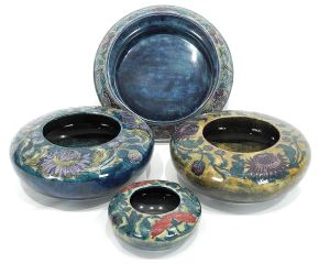 LOT 220 Four S. Hancock & Sons Morris Ware Bowls, G. Cartlidge, 5 1/4 - 11"h (2 cracked). Estimate: $100 - $200 Sold For: $300 Auction Date: Tuesday, February 10 2026 at 4:00 PM