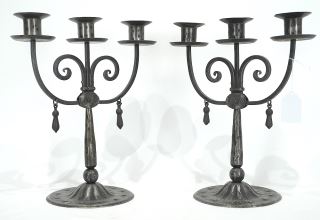 LOT 203 Wrought Iron Dinner Gong & Stick (15"h) with Pair of Similar Candelabra, 11 1/4"h. Estimate: $60 - $120 Sold For: $60 Auction Date: Tuesday, February 10 2026 at 4:00 PM