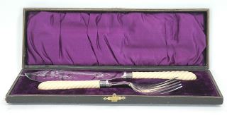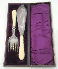 LOT 164 Pair of Silver Plate Handled Fish Server with Silver Ferrules, 11 3/4" , Cased (fork damaged). Estimate: $60 - $100 Auction Date: Tuesday, February 10 2026 at 4:00 PM