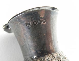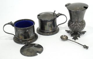 LOT 330 Three Hallmarked Silver Condiment Pots, 2 1/16"h, 104g (as found). Estimate: $200 - $300 Sold For: $200 Auction Date: Tuesday, February 10 2026 at 4:00 PM