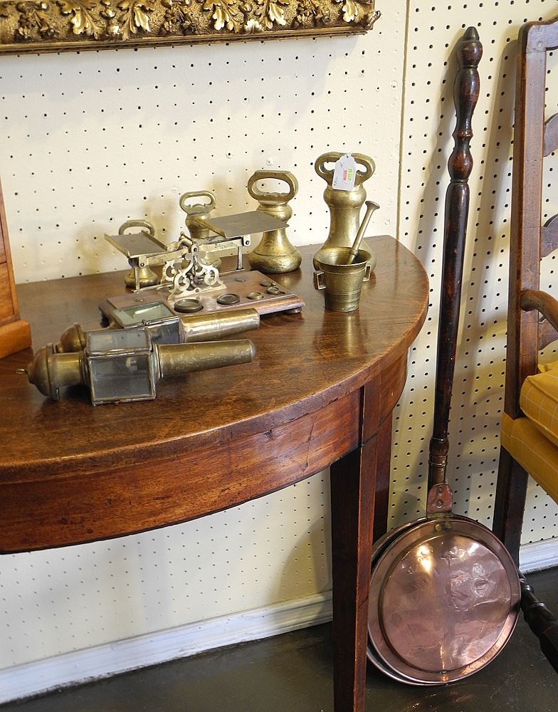 LOT 16 Nine pc Antique Brass & Copper; Bell Weights / Scales / Lamp / Bed Warmer Estimate: $100 - $200 Sold For: $140 Auction Date: Tuesday, February 10 2026 at 4:00 PM