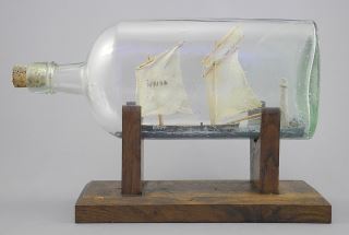 LOT 84 Old Ship in a Bottle (11 3/8"L.) on an Oak Stand. Estimate: $50 - $60 Sold For: $60 Auction Date: Tuesday, February 10 2026 at 4:00 PM