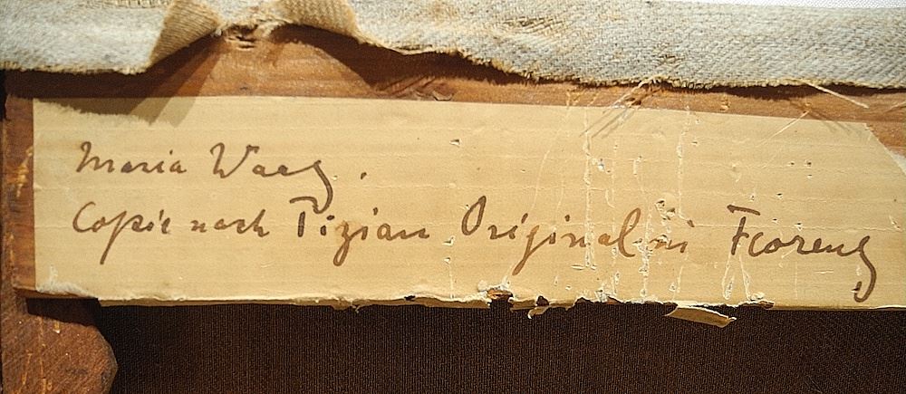 Oil on Canvas Attributed to Maria Waes After Titian, 27 x 23 1/4 , "Madonna & Child with...