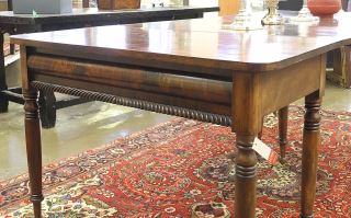 Pair of American Mahogany D-End Tables, Each 30 1/4 x 40 x 21 3/4".