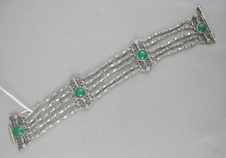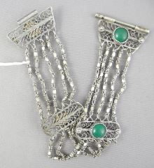 LOT 159 Yemeni Silver Alloy & Green Glass Bracelet, 6 3/4"L, 15.7g. Estimate: $80 - $100 Sold For: $80 Auction Date: Tuesday, February 10 2026 at 4:00 PM
