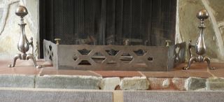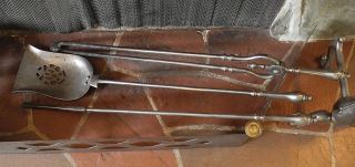 Georgian Steel Three Piece Companion Set, Curb & Andirons.