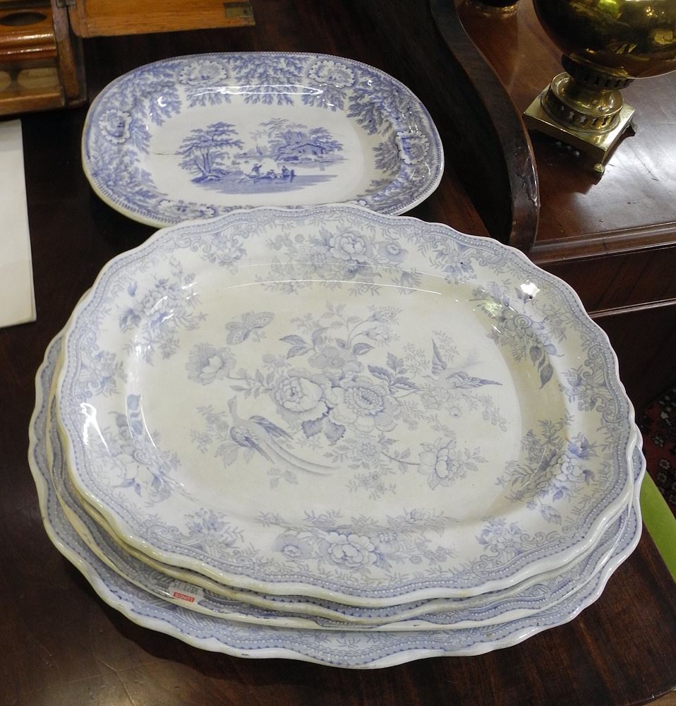 LOT 312 Collection of Staffordshire Blue & White Platters & Dishes, 11 1/4 - 17 1/2"w. Estimate: $100 - $200 Sold For: $130 Auction Date: Tuesday, February 10 2026 at 4:00 PM