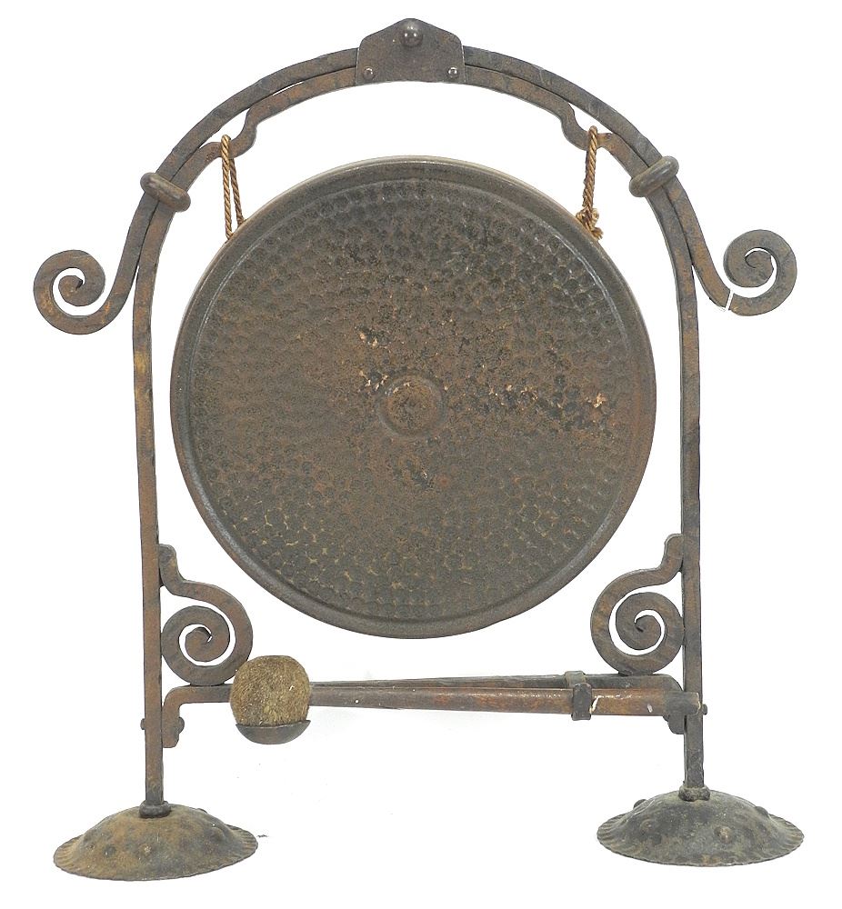 LOT 203 Wrought Iron Dinner Gong & Stick (15"h) with Pair of Similar Candelabra, 11 1/4"h. Estimate: $60 - $120 Sold For: $60 Auction Date: Tuesday, February 10 2026 at 4:00 PM