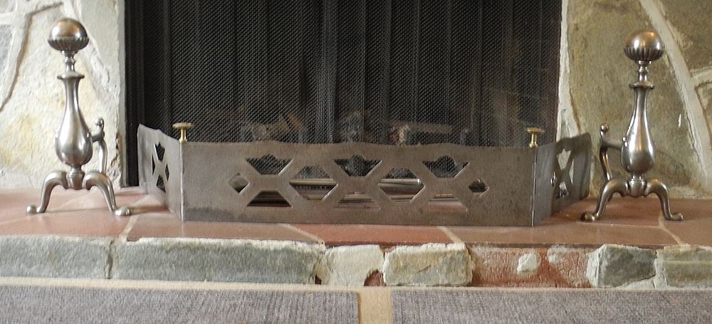 Georgian Steel Three Piece Companion Set, Curb & Andirons.