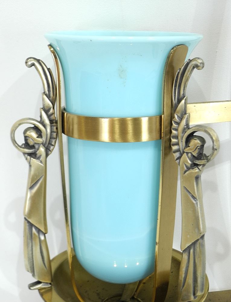 Ecclesiastical Brass & Blue Glass Chi-Rho Wall Sconce, 18 1/2"h.