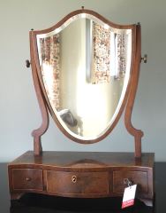 LOT 345 Early Victorian Inlaid Mahogany Shield Shaped Dresser Mirror, 16 1/2 x 8 x 22"h. Estimate: $200 - $400 Sold For: $200 Auction Date: Tuesday, February 10 2026 at 4:00 PM