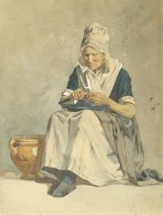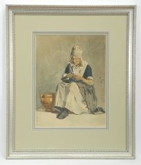 Watercolour signed E.S. Witkamp 18 June'78, 13 3/4 x 10 1/4", "Woman Preparing Food".