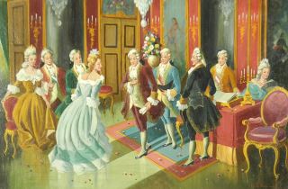 LOT 233 Oil on Canvas signed H.D. Espinoza, 24 x 36", "French Rococo Scene". Estimate: $80 - $200 Sold For: $70 Auction Date: Tuesday, February 10 2026 at 4:00 PM