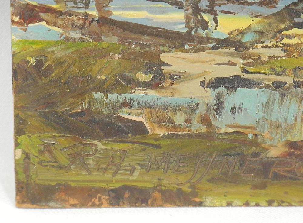 LOT 294 Oil on Masonite signed R.A. (Rudolph Anton) Messner, 11 3/4 x 9 1/2", "Old Fence and Tree". Estimate: $60 - $100 Sold For: $30 Auction Date: Tuesday, February 10 2026 at 4:00 PM