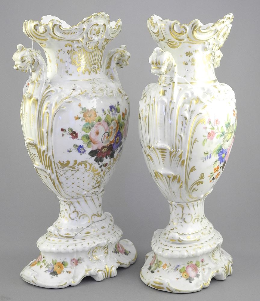 Pair of French Porcelain Vases, 12 3/4"h (foot rim cracked).