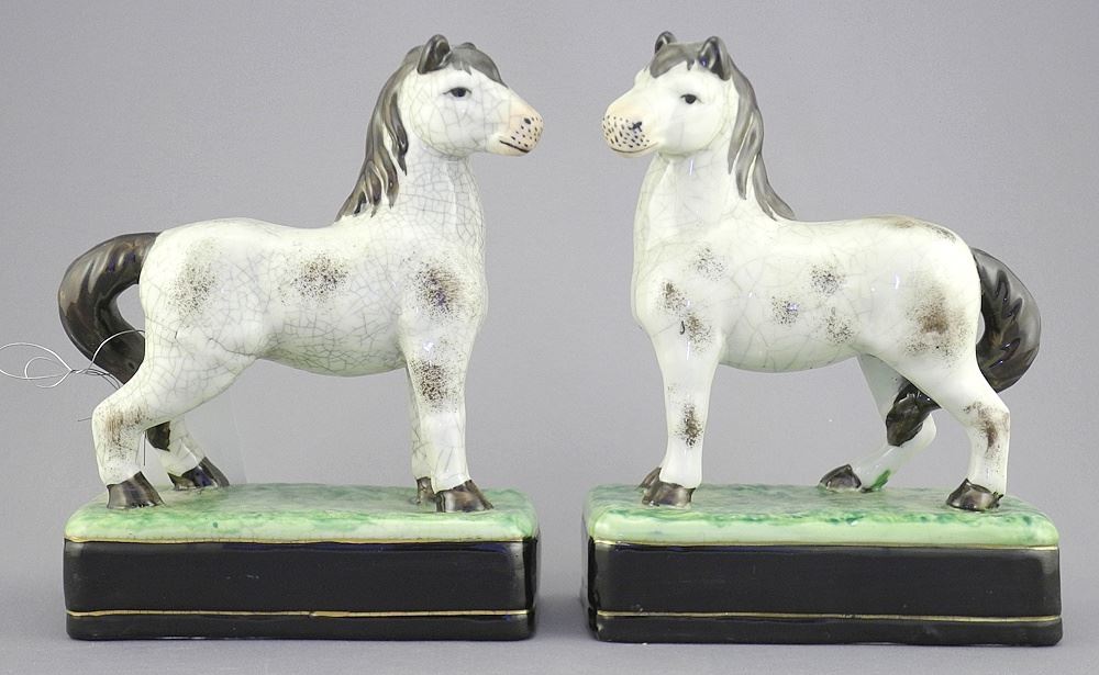 Collection of Staffordshire Pottery Including Pair of 7" Ponies, Castle & Dog.