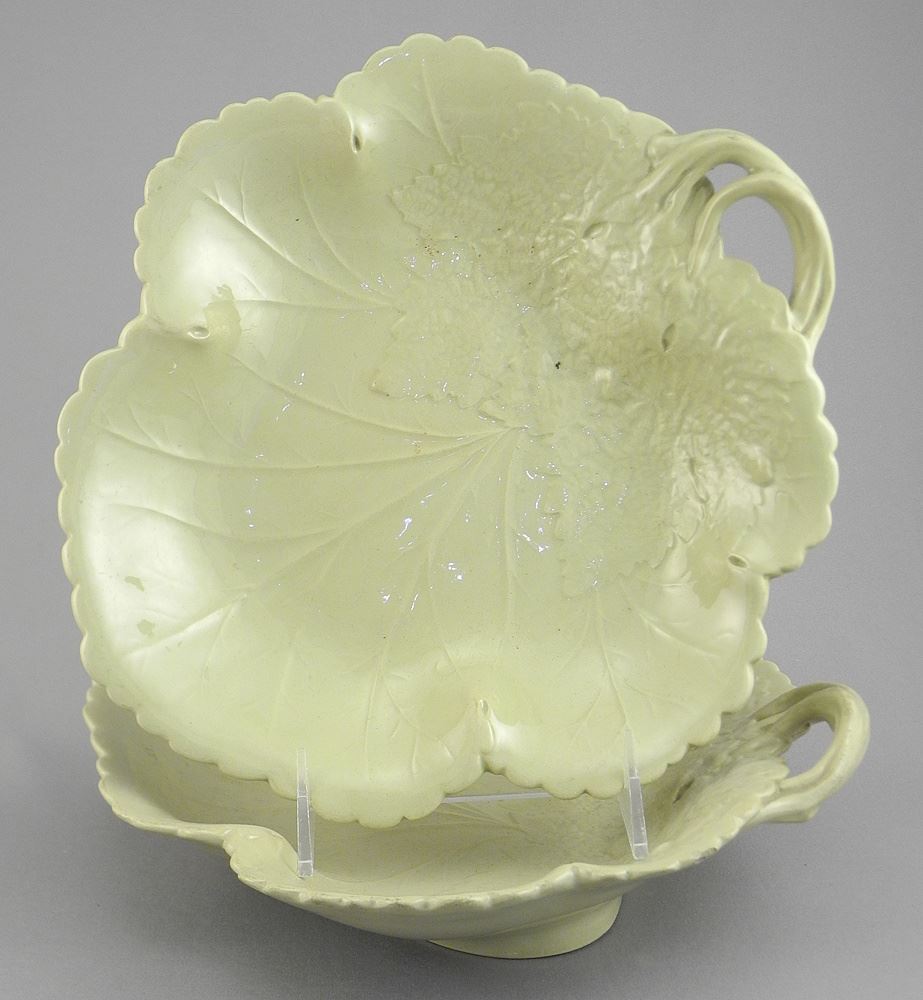 LOT 337 Collection of Cabbage Leaf & Fern Pattern Earthenware Dishes, 9 1/4 - 11 1/4" (nibbled). Estimate: $100 - $200 Sold For: $90 Auction Date: Tuesday, February 10 2026 at 4:00 PM