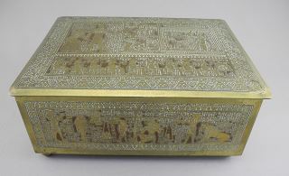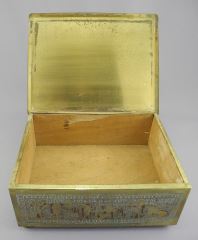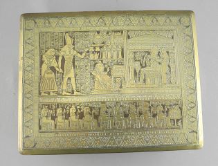 LOT 254 Egyptian Style Brass Cigar Box, 2 3/4 x 7 1/8 x 5 1/2"h, TW 205g. Estimate: $50 - $60 Sold For: $35 Auction Date: Tuesday, February 10 2026 at 4:00 PM