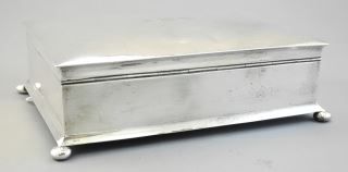 LOT 420 English sterling silver jewelry box- Birmingham 1911, 8". Estimate: $400 - $600 Sold For: $400 Auction Date: Tuesday, December 11 2018 at 6:00 PM