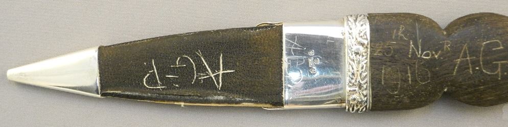 Scottish Hallmarked Silver Dirk, Back signed and dated AGP, Nov.r, 1916, 7 3/4" L.