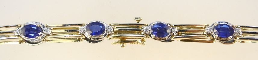 14K Two Toned Sapphire Bracelet, with 10 oval sapphires each weighing 0.62cts.