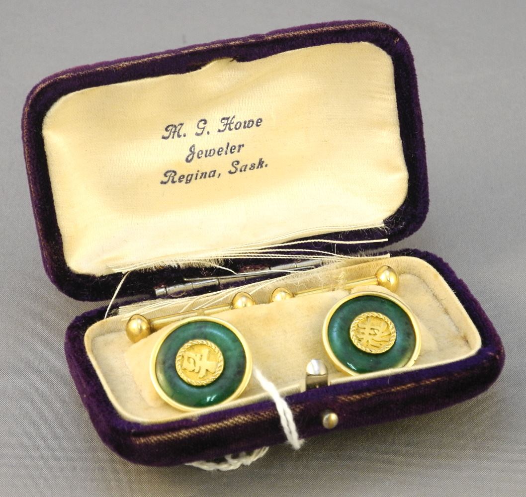 LOT 82 Pair of Jade & Gold Cuff Links with Chinese Characters. Estimate: $80 - $100 Sold For: $60 Auction Date: Tuesday, May 17 2022 at 6:00 PM