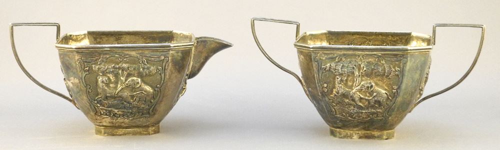Indian Silver Tea Set Marked Bapalal & Co., Pot 9 1/4" Length, 620 Grams.