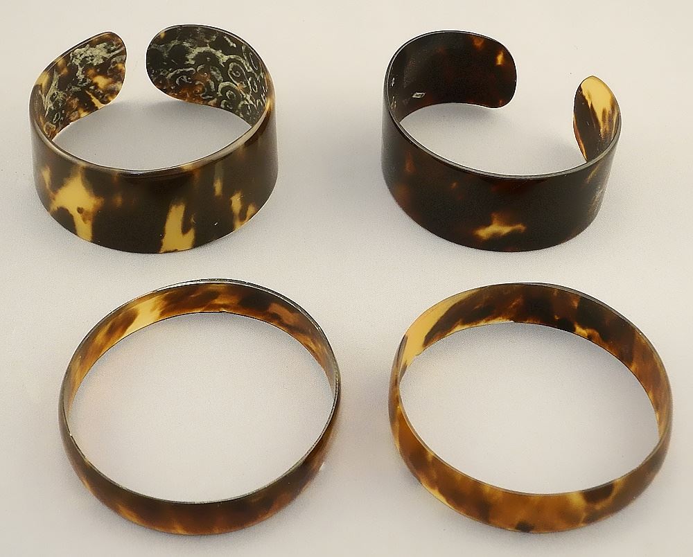 LOT 242 4 Tortoiseshell Bracelets: 2 Cuff & 2 Bangle, 2 5/8" - 2 3/4" Wide, 37 grams, No Export Estimate: $100 - $150 Sold For: $140 Auction Date: Tuesday, September 19 2023 at 4:00 PM