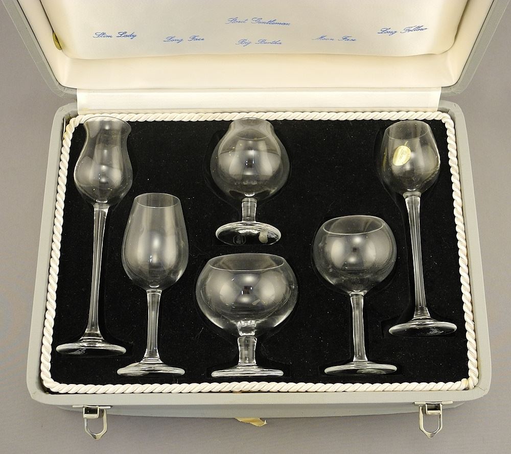 Cased Set of Moser Crystal "Physiognomical Miniature Snifters".