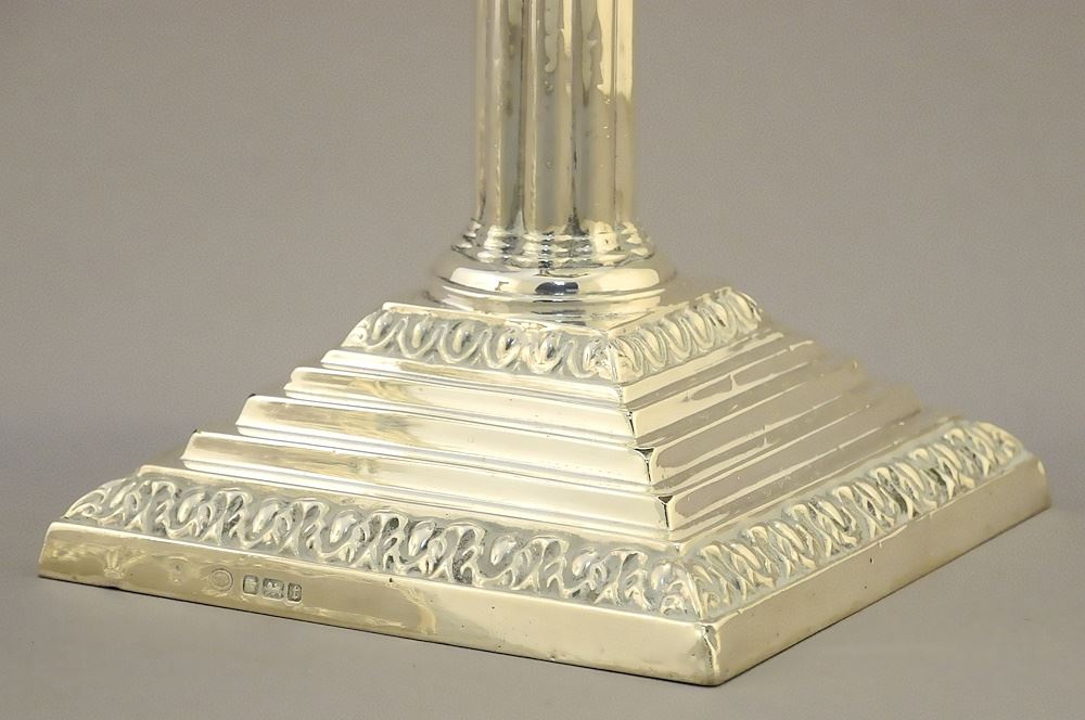 Pair of Hallmarked Silver Candlesticks, JR Sheffield, weighted - 5 3/4"h, 710 gr.