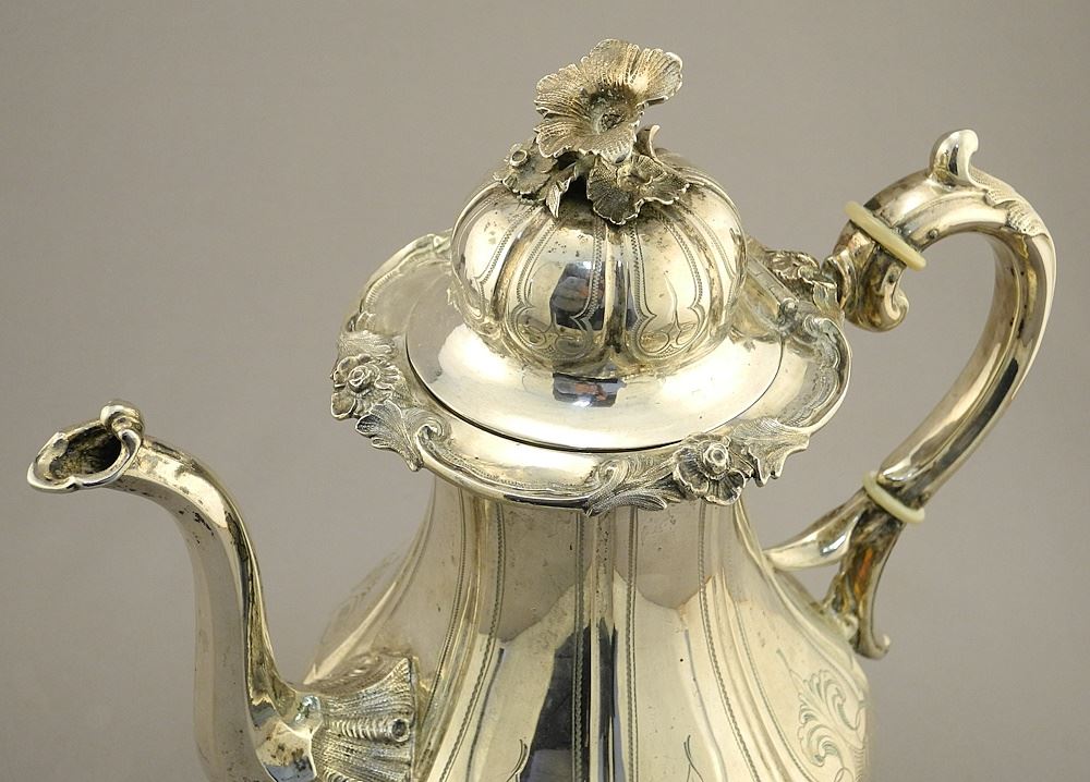 LOT 96 German 12 Loth Silver Coffee Pot, 19th Century, 785 grams, 10 1/2"H. Estimate: $500 - $600 Sold For: $450 Auction Date: Tuesday, September 19 2023 at 4:00 PM