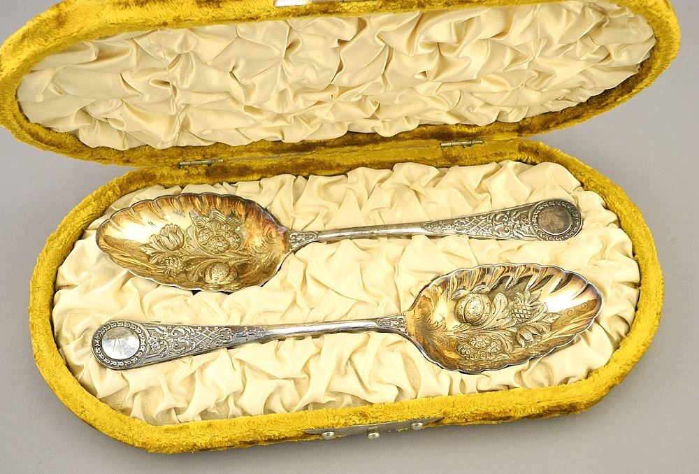 Pair of Cased Hallmarked Silver Berry Spoons.