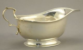 LOT 101 Hallmarked Silver Gravy Boat- Birmingham 1916, 6 1/2"D, 97 grams. Estimate: $70 - $90 Sold For: $70 Auction Date: Tuesday, September 19 2023 at 4:00 PM